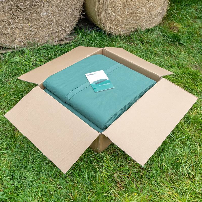 Var god notera att även om denna baltäckningsduk är en effektiv tillfällig lösning för att skydda dina balar, ersätter den inte permanent förvaring i en hall eller liknande förvaringsutrymme. I fråga om förvaring för en längre tid: Vi rekommenderar att du letar efter mer lämpliga alternativ för långtidsförvaring för att säkerställa kvaliteten på din skörd på lång sikt.