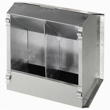 Den perforerade och rundade bottnen säkerställer att fodret förblir rent och dammfritt. Locket skyddar också fodret från kontaminering. Det är enkelt att fylla på foderautomaten eftersom det även görs från utsidan.